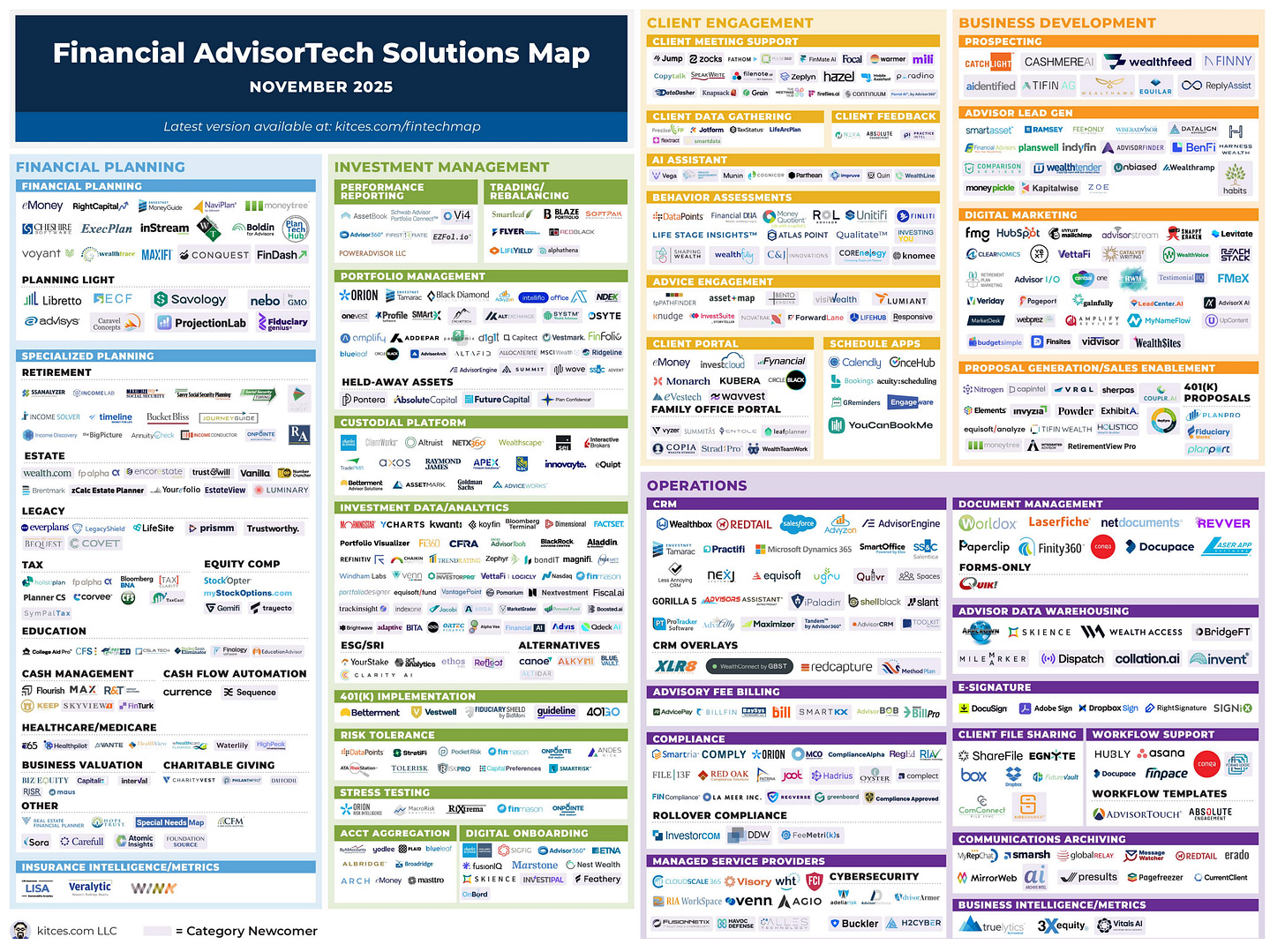 According to the Kitces Report, Sept 2025, the median advisory firm uses 12 separate technology applications. But why stop at 12 when you could have 120? Kitces latest market map has got you covered.