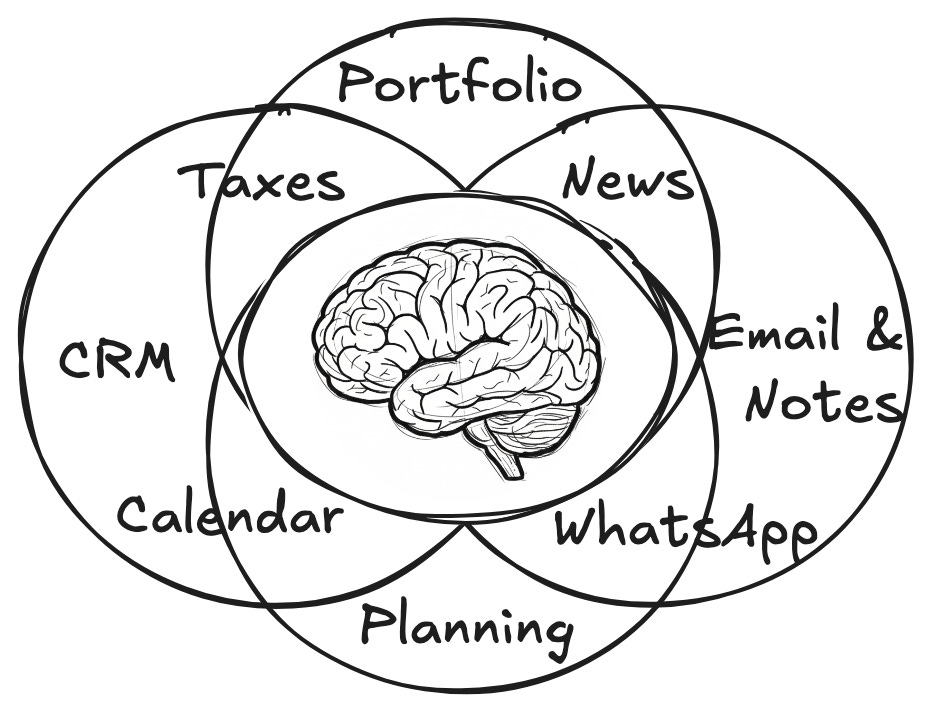 So firms compensate with meetings, manual work, Excel, and sometimes even project management software or knowledge managers - a fragile web of human context-holding. The real system of record isn’t digital at all; in most firms it’s the advisor’s brain. They carry the context in their heads because nothing else does.5 That model doesn’t scale, and it doesn’t adapt.